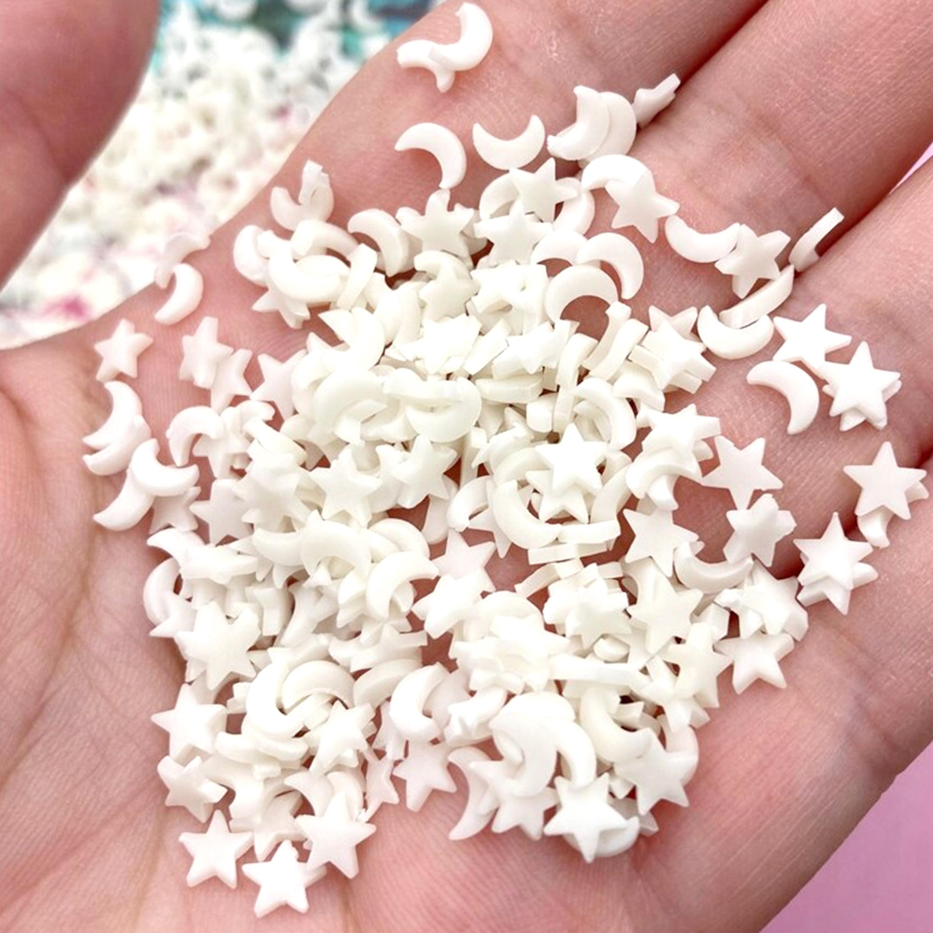 Beautify your crafts with our glow-in-the-dark polymer clay slices in moon, heart, and star shapes. Perfect for slime, nail art, and resin projects, these sprinkles add a luminous touch to your creations. Choose design and choose your size in this 20g package. You can use the Polymer Clay Slices in Resin, Nail Art, Clay Crafts, or Slime.