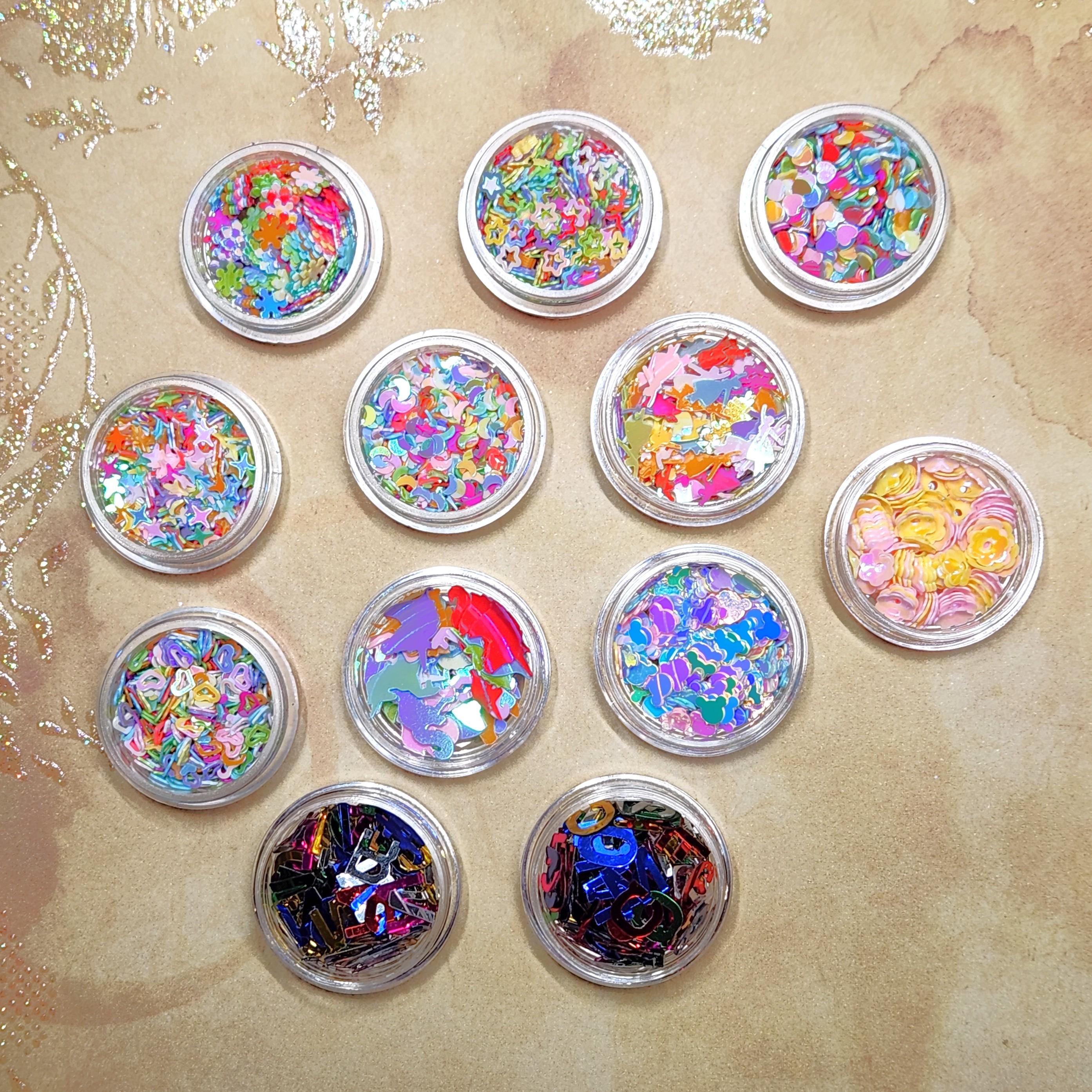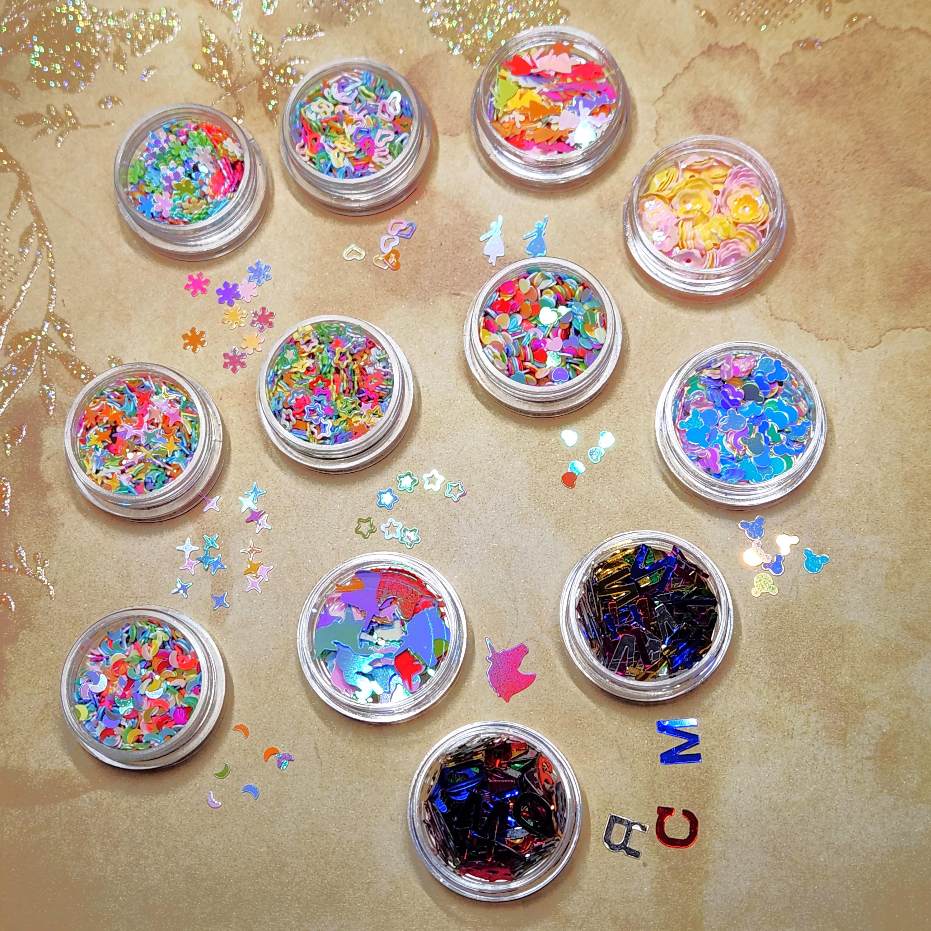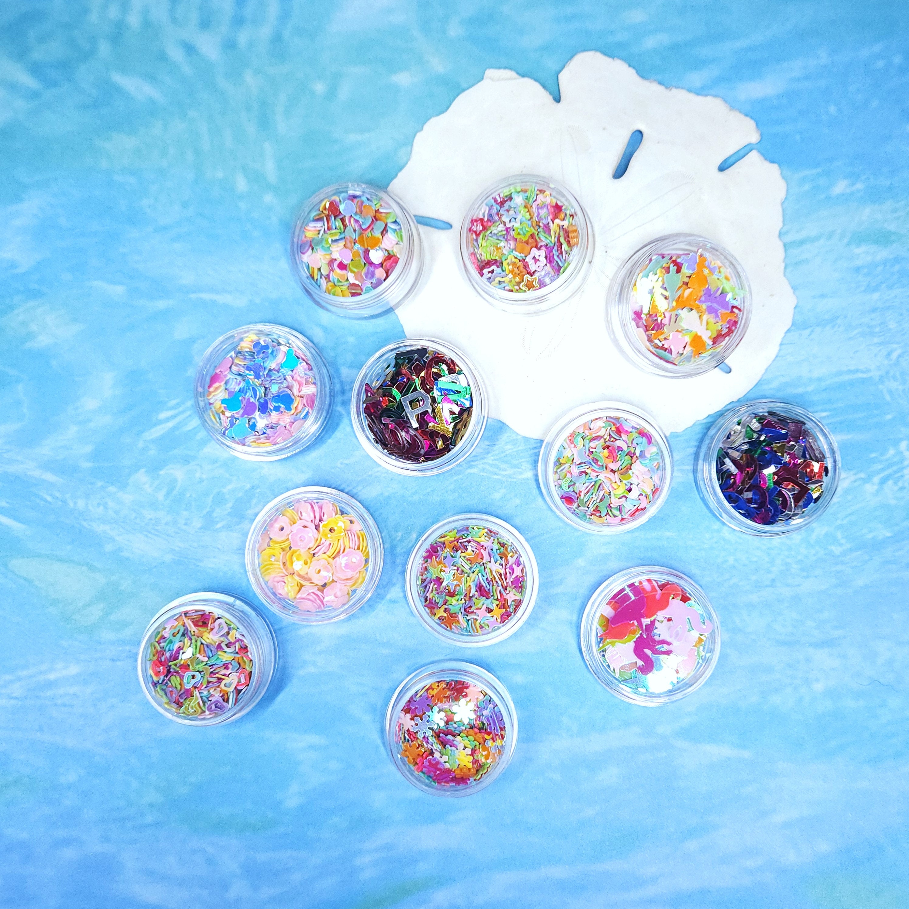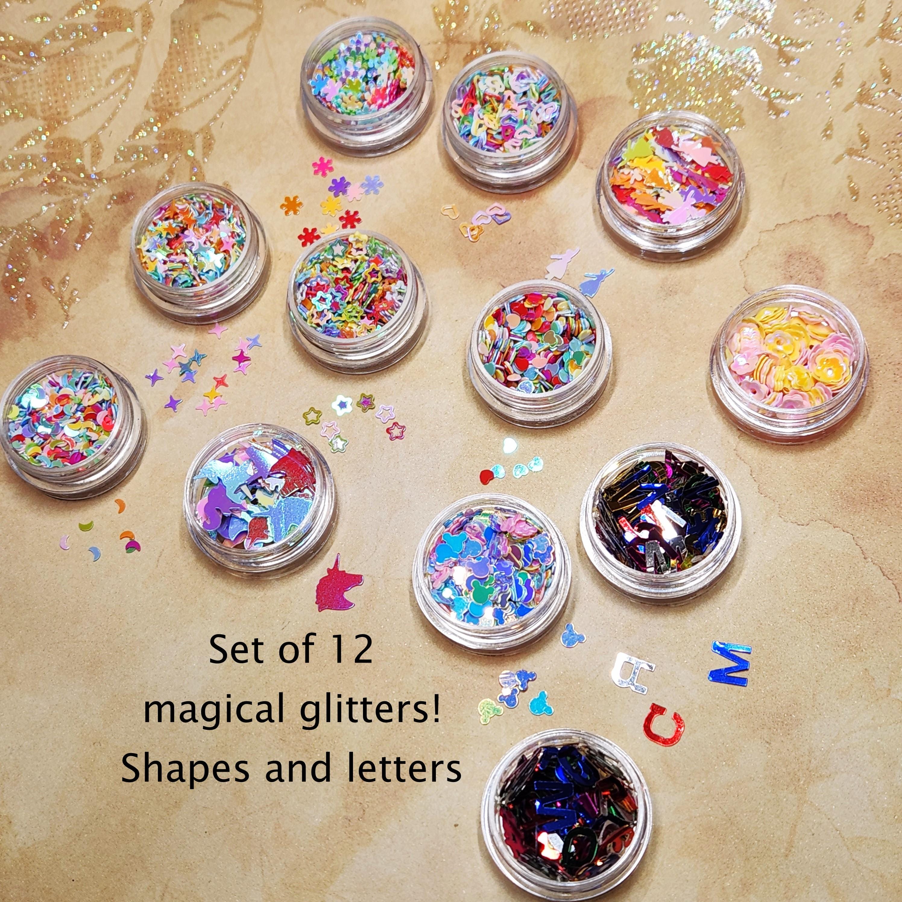 12 Jars of Mixed and Assorted Glitter Shapes and Alphabet with Numbers Fillings. Resin Art Supplies.