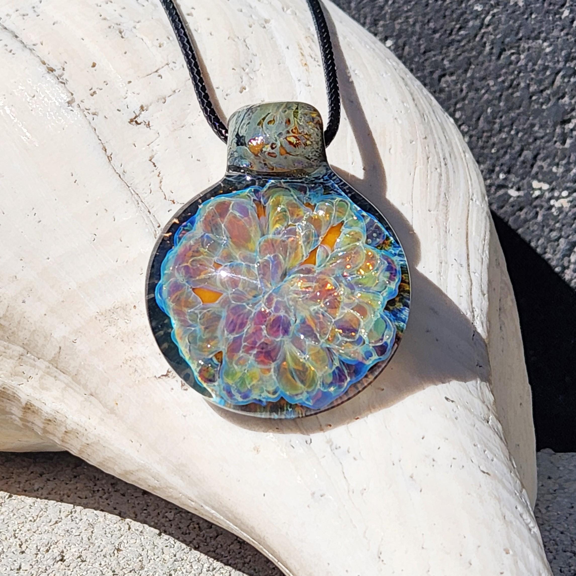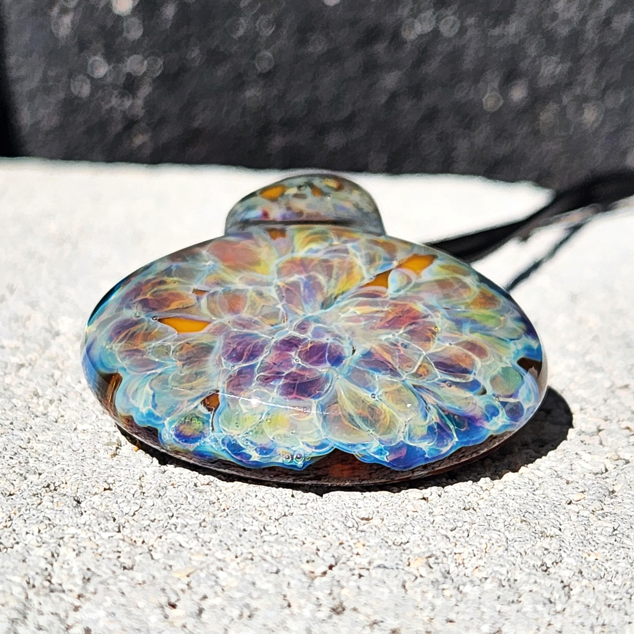 All pendants are properly annealed in a digitally controlled kiln for strength and durability. Photos are taken in natural sunlight to showcase the true colors. No filters were used.