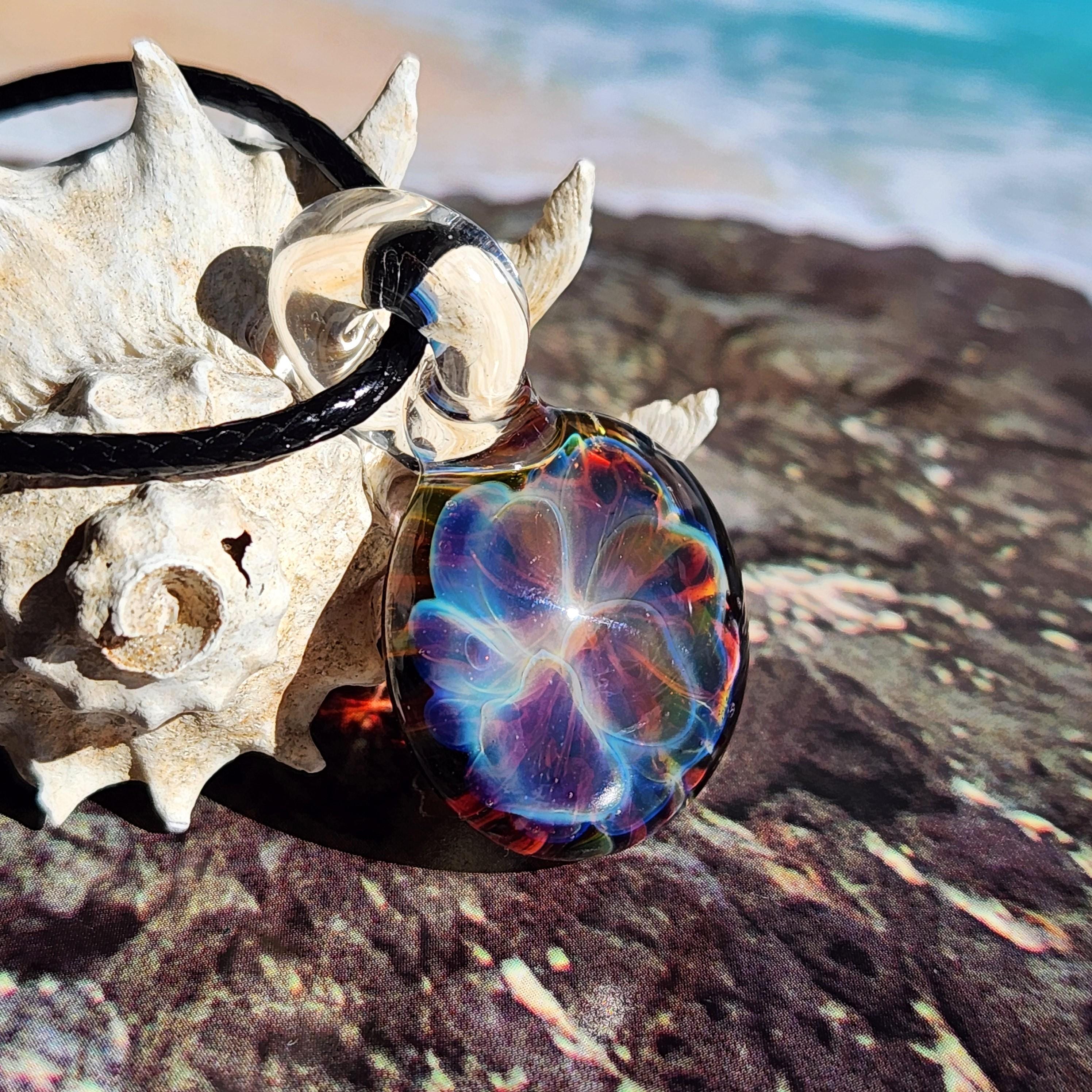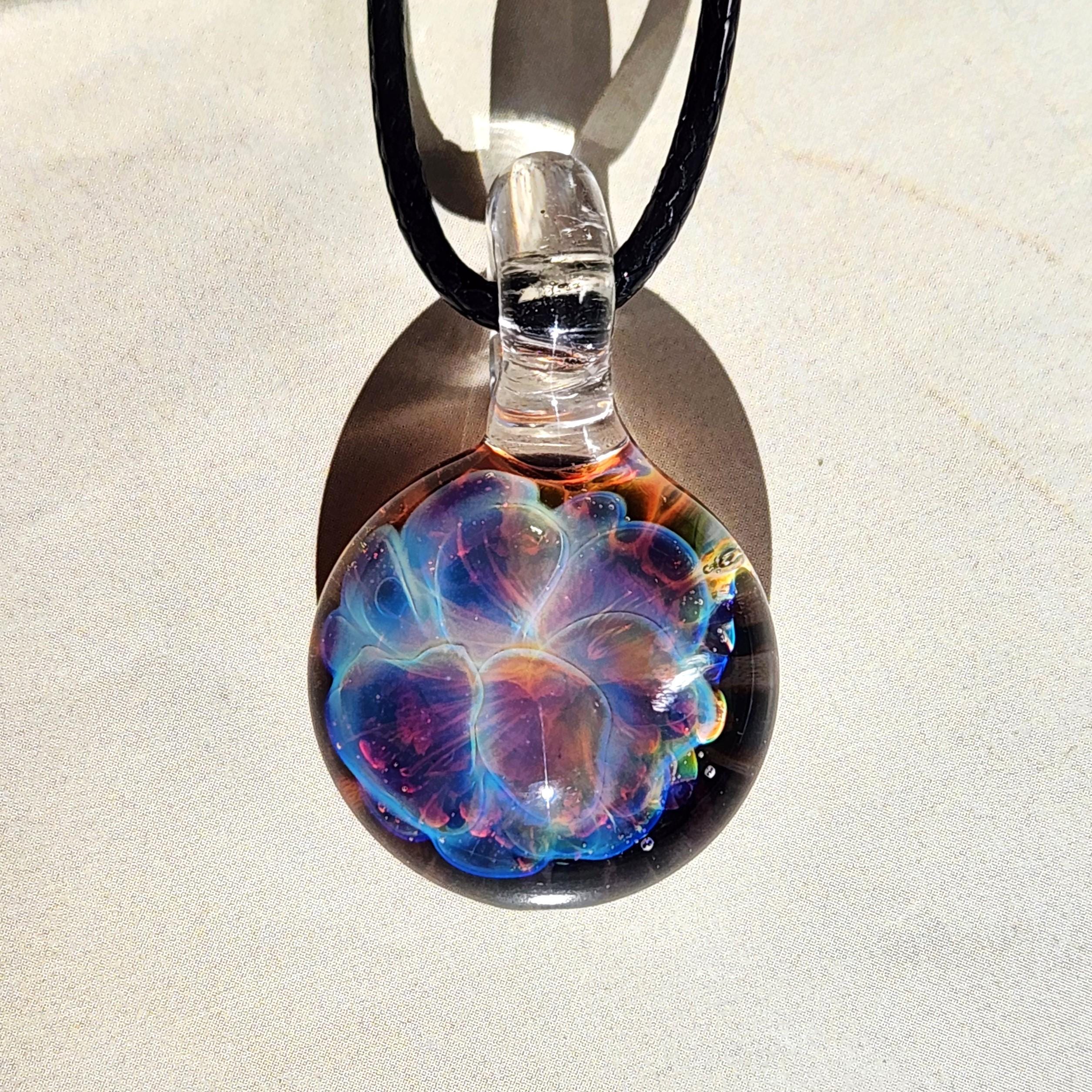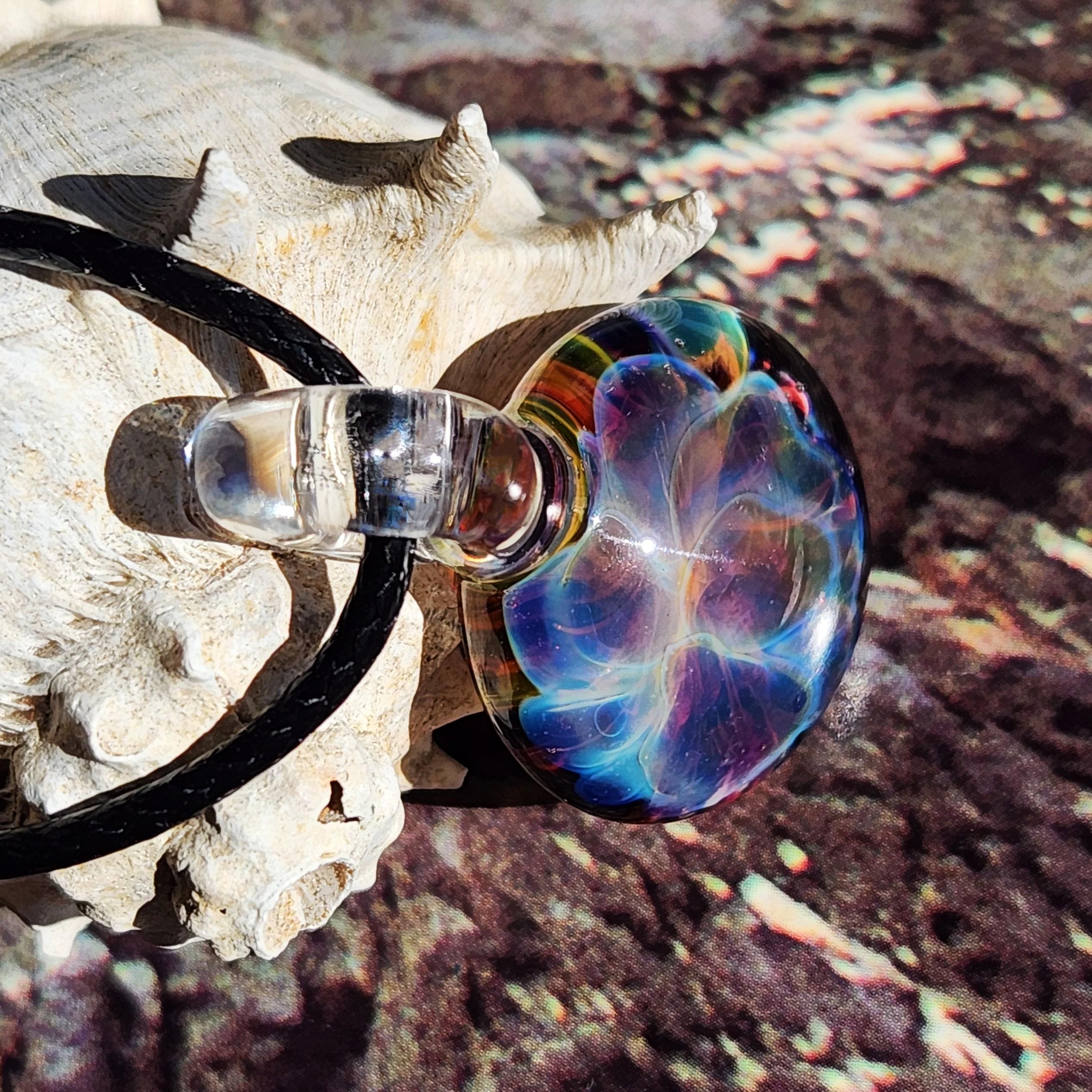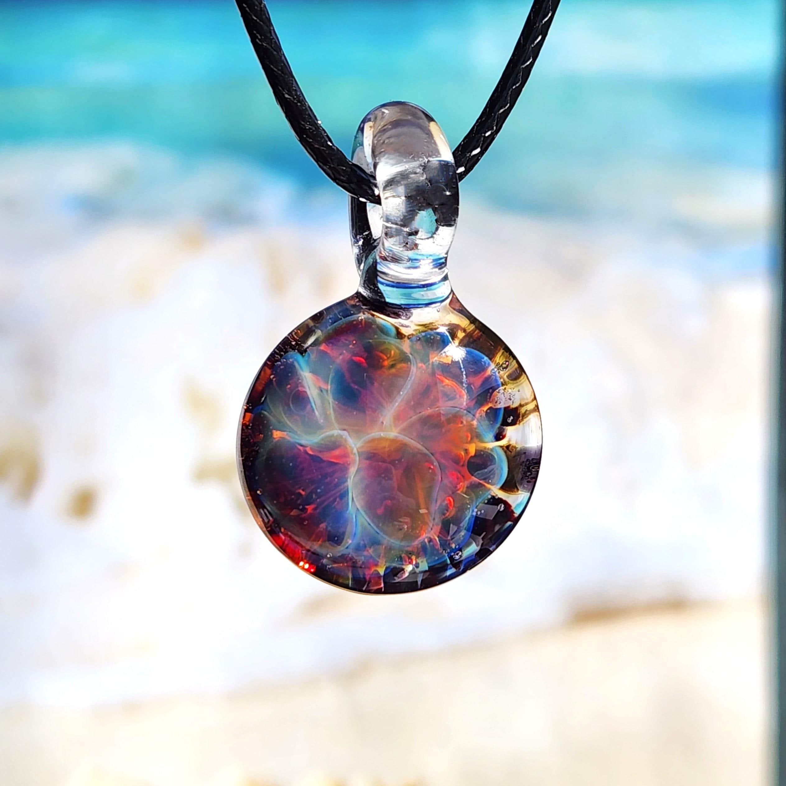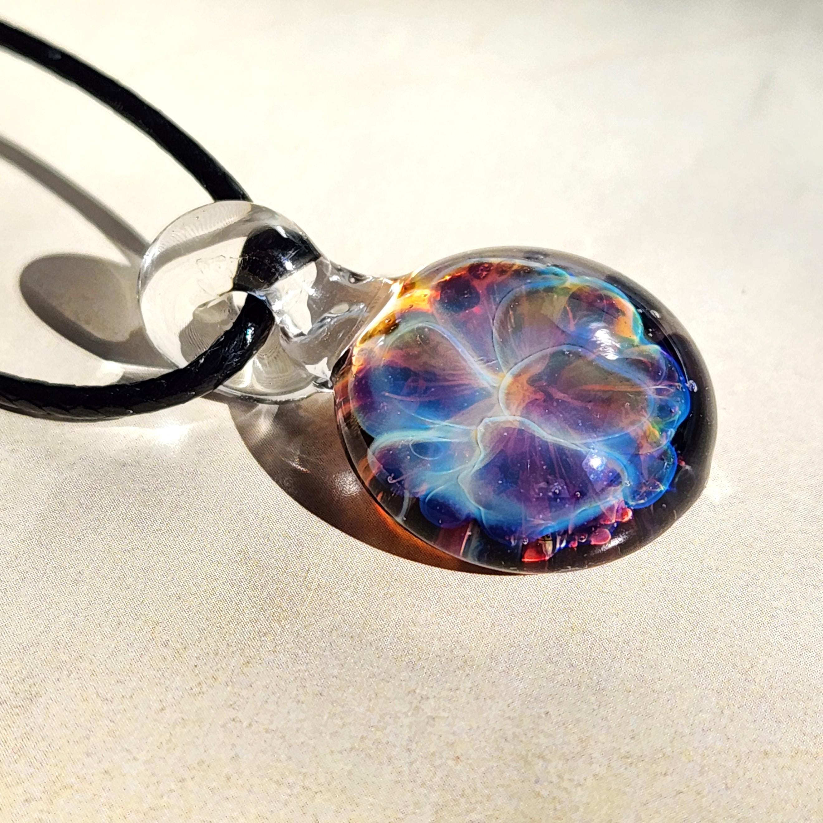 Made from high-quality borosilicate glass and kiln-annealed for durability, this pendant is both lightweight and comfortable to wear. Whether you're drawn to its trippy glass aesthetic, heady glass vibes, or artistic craftsmanship, this USA-made glass pendant necklace is a perfect addition to any jewelry collection.