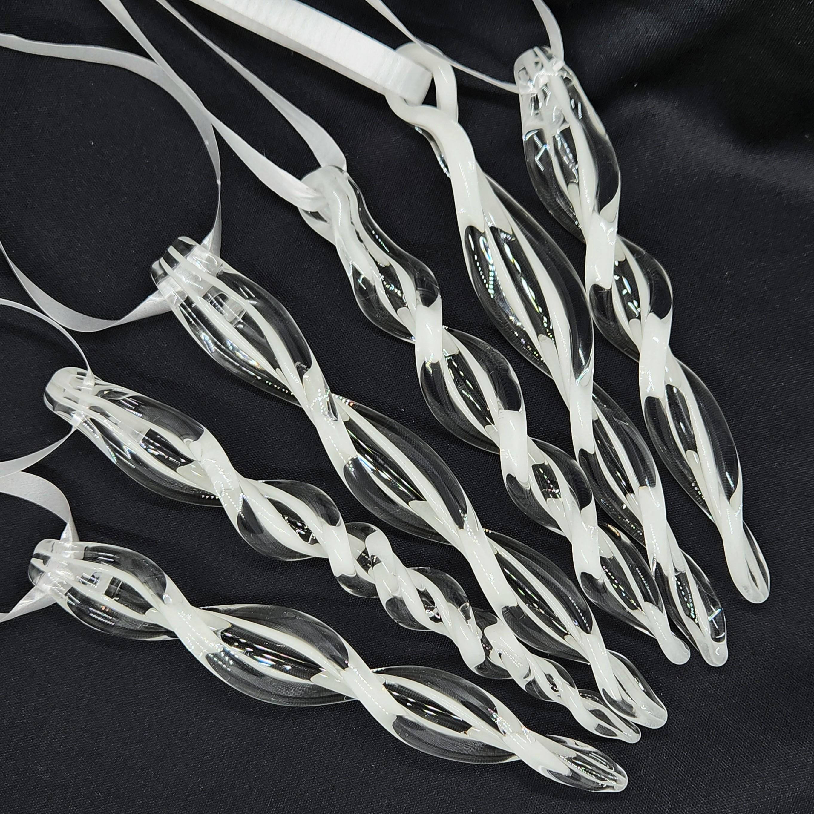 All icicles are made to order which means they are made once you order. All pictures are examples only and your icicle will look slightly different, you may notice variation in color or size. Each one is a one-of-a-kind, similar to pictures, but very unique at the same time.