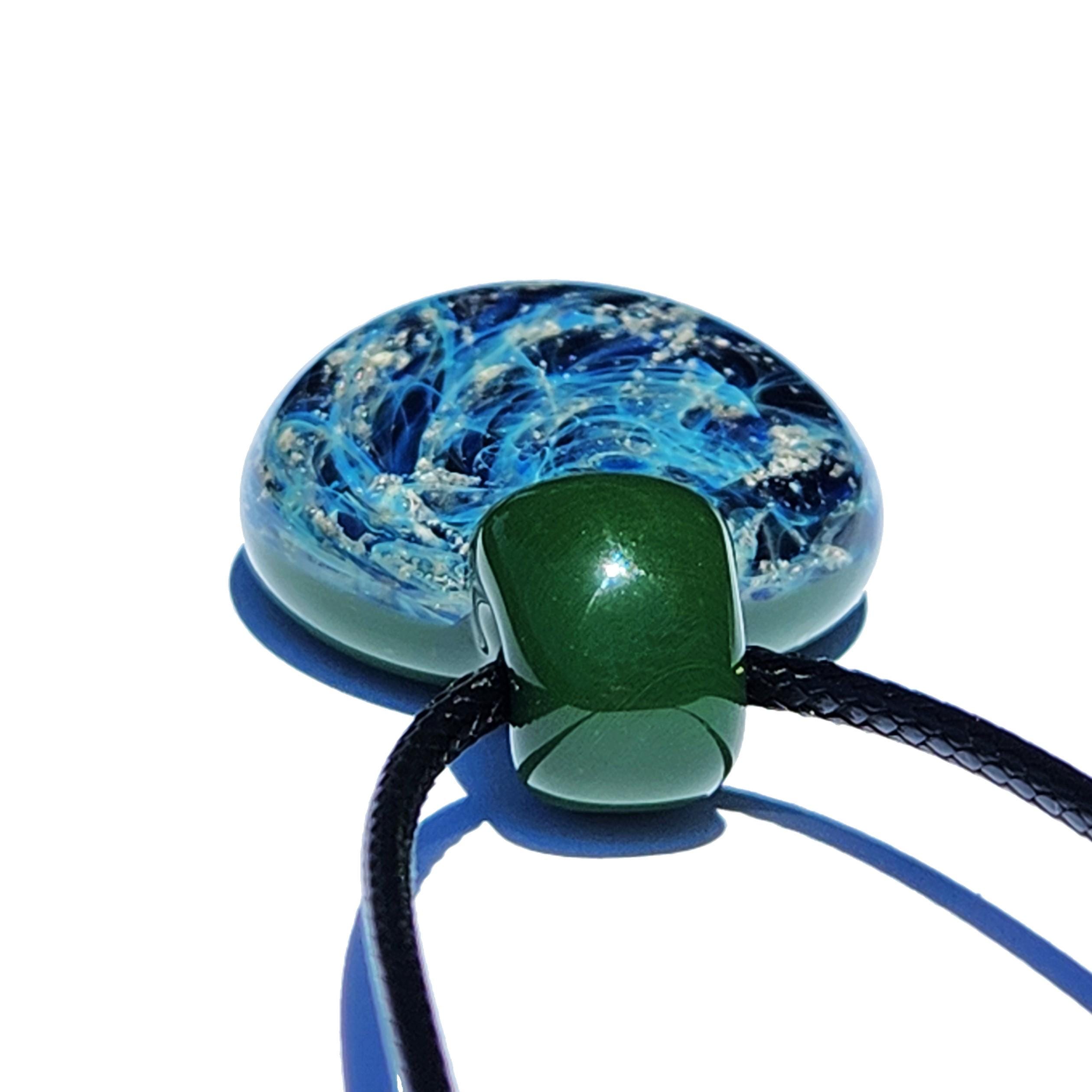 The Galaxy cremation jewelry necklace is made to order. This memorial pendant is designed and made by me. Using carefully selected materials of pure silver and finest borosilicate glass, I will respectfully place your pet's ashes into a blown glass pendant. It will be annealed in the kiln for strength and durability. You have a choice of color used on the back and the hoop of this handmade ash infused glass pendant and you can pick your favorite color from the drop-down menu.