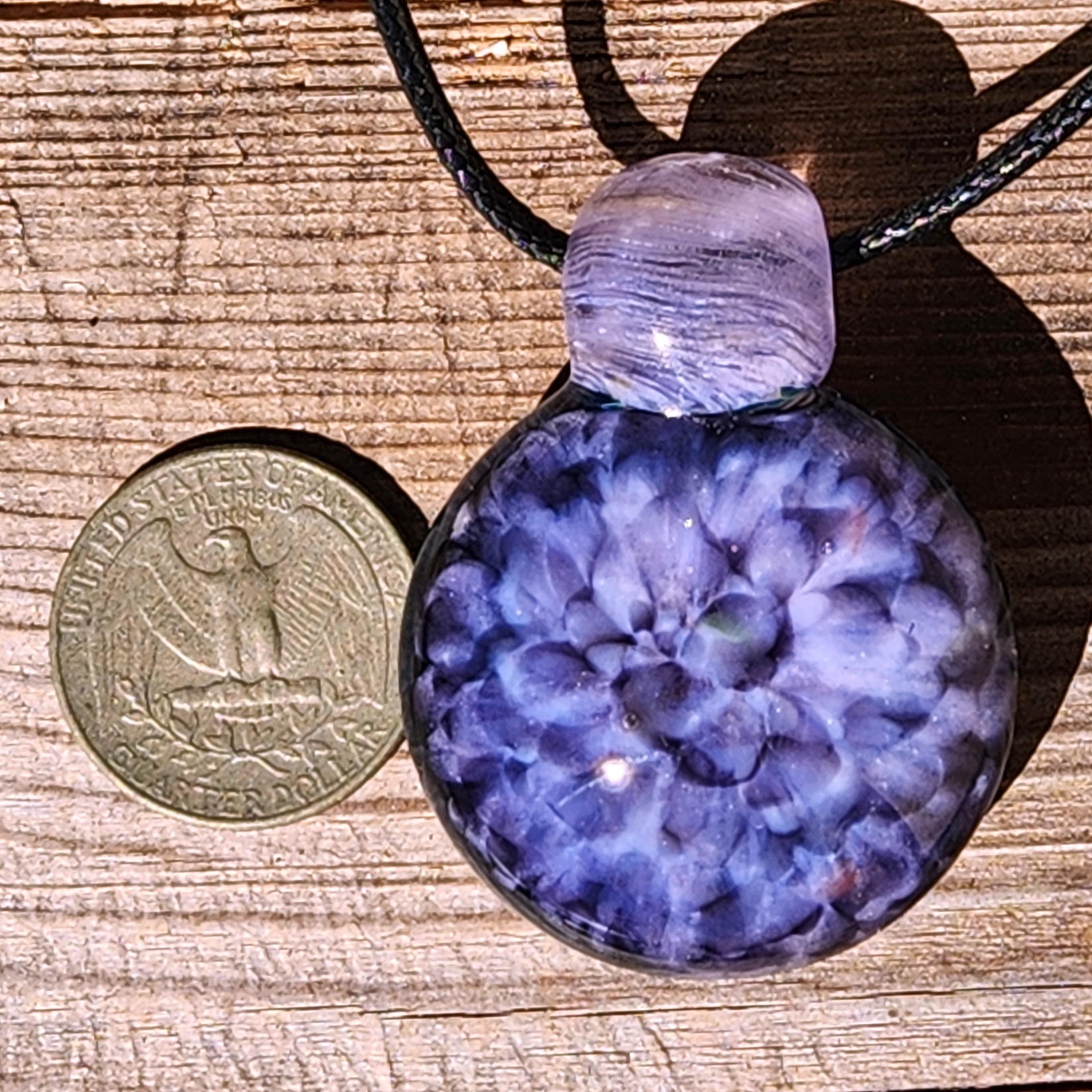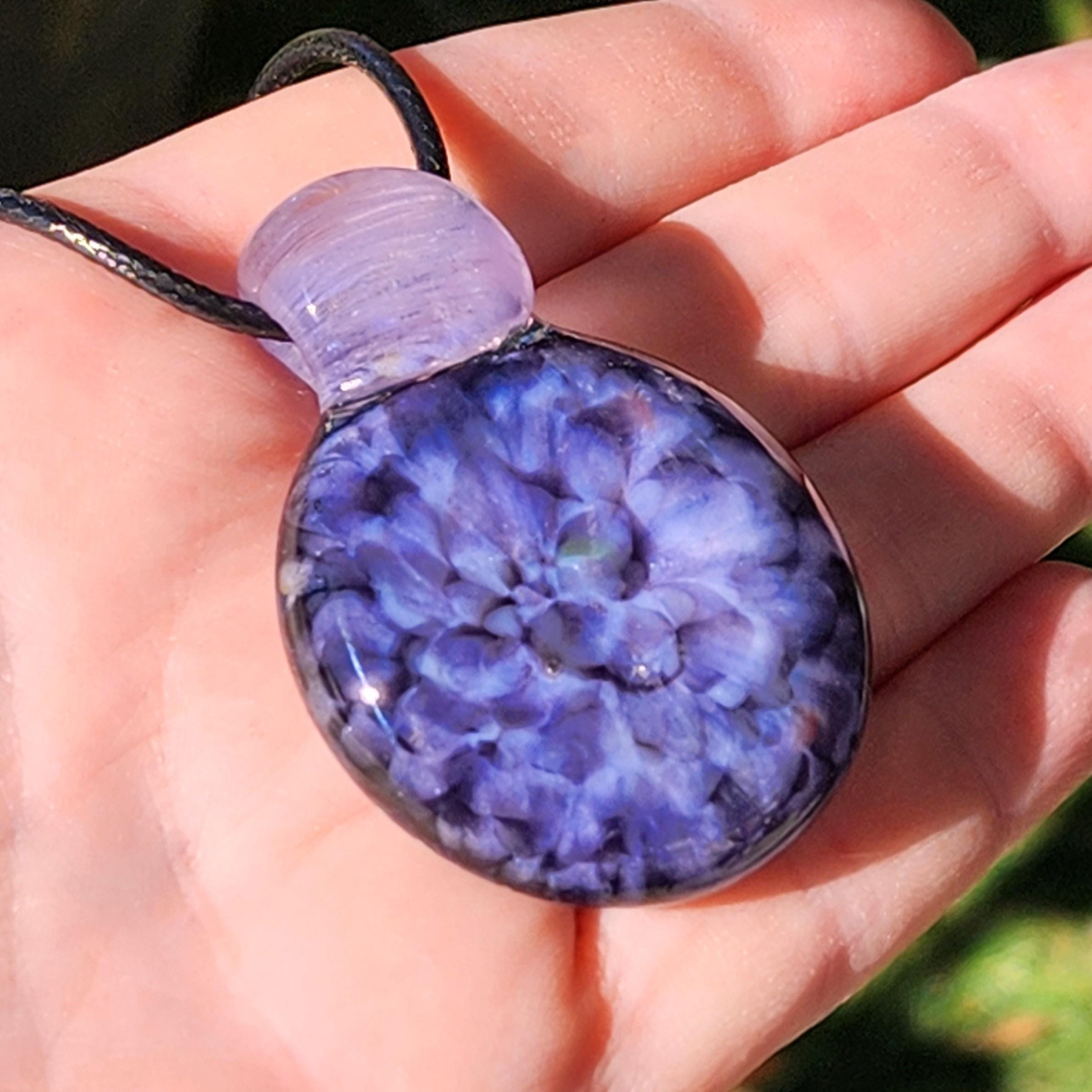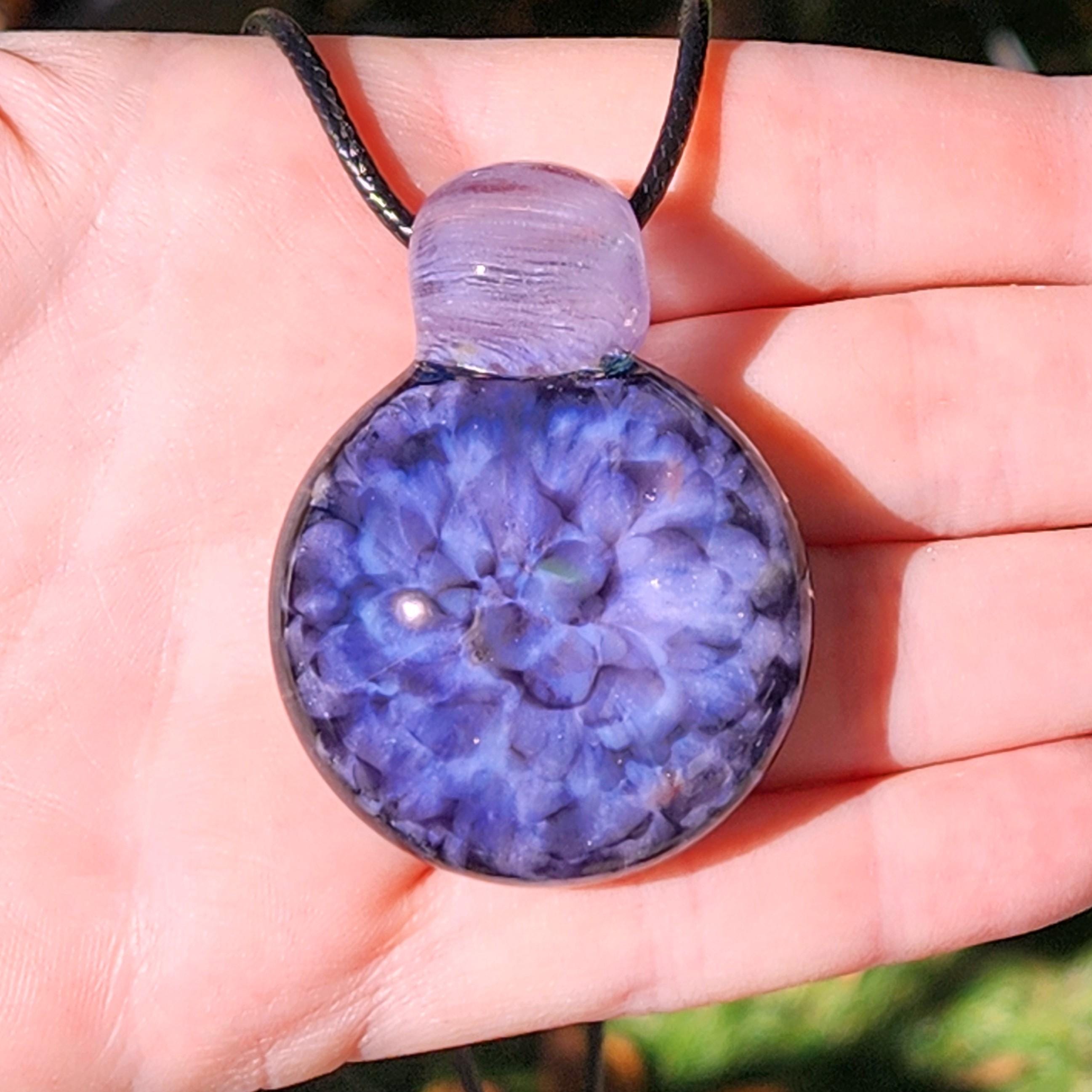 At our studio, we specialize in using a wide variety of materials, including blown glass and stainless steel pendants. The stainless steel pendants can also be made with ashes or fur, hair, and other special items. We encase human and pet cremains within the glass. Etsy prohibits the use of human ash in any creations, so please contact us for more info before placing an order.