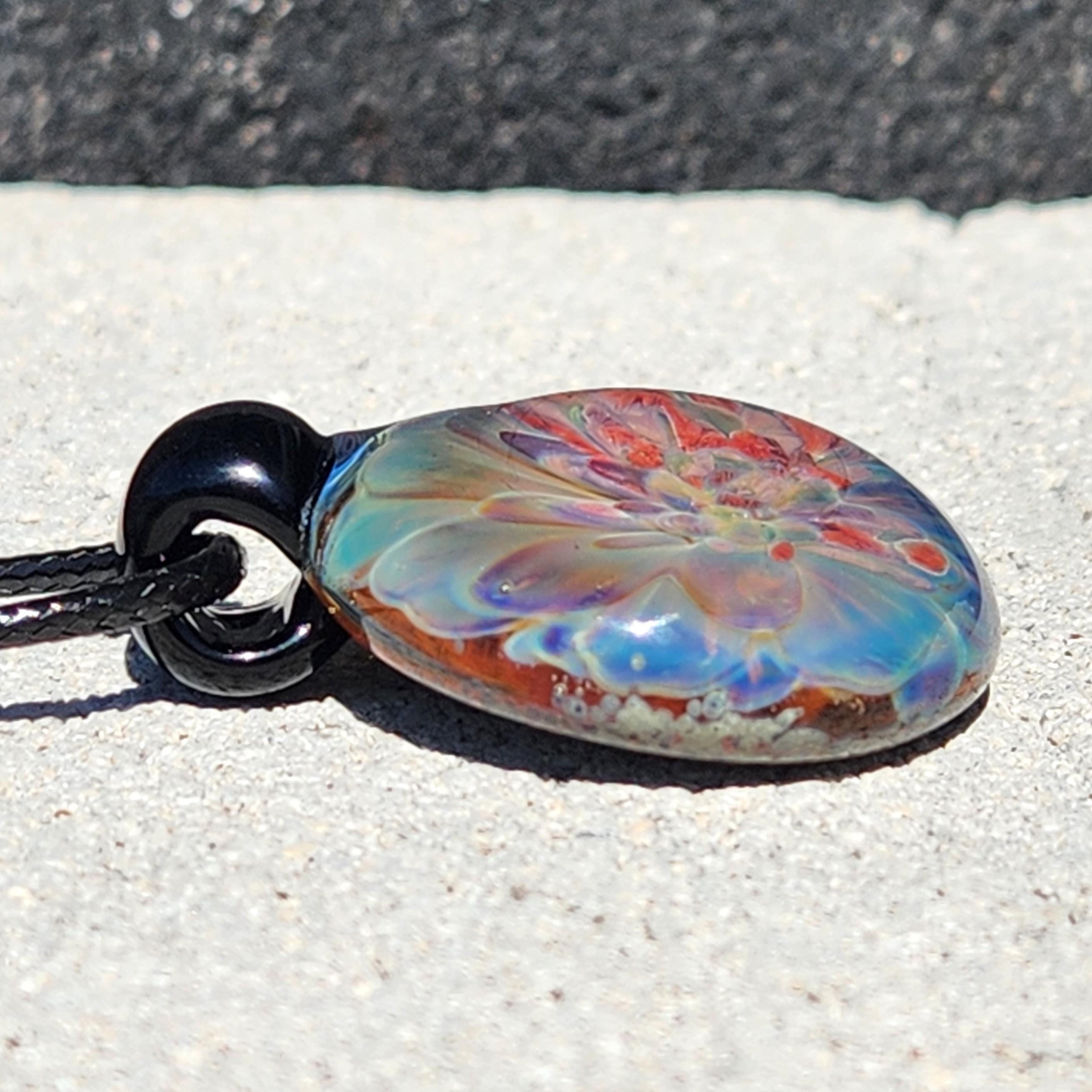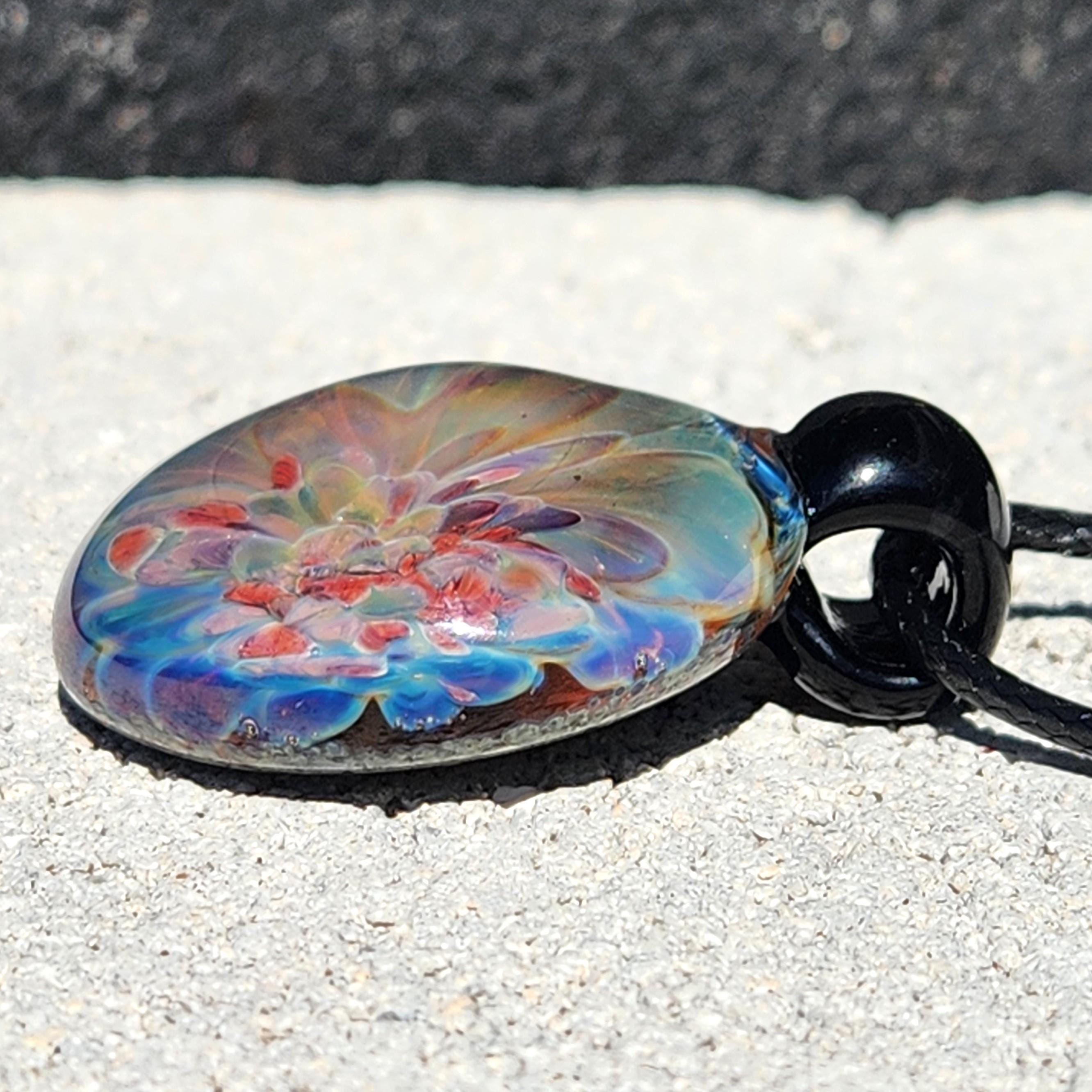 All pendants are properly annealed in a digitally controlled kiln for strength and durability. Photos are taken in natural sunlight to showcase the true colors, no filters were used.