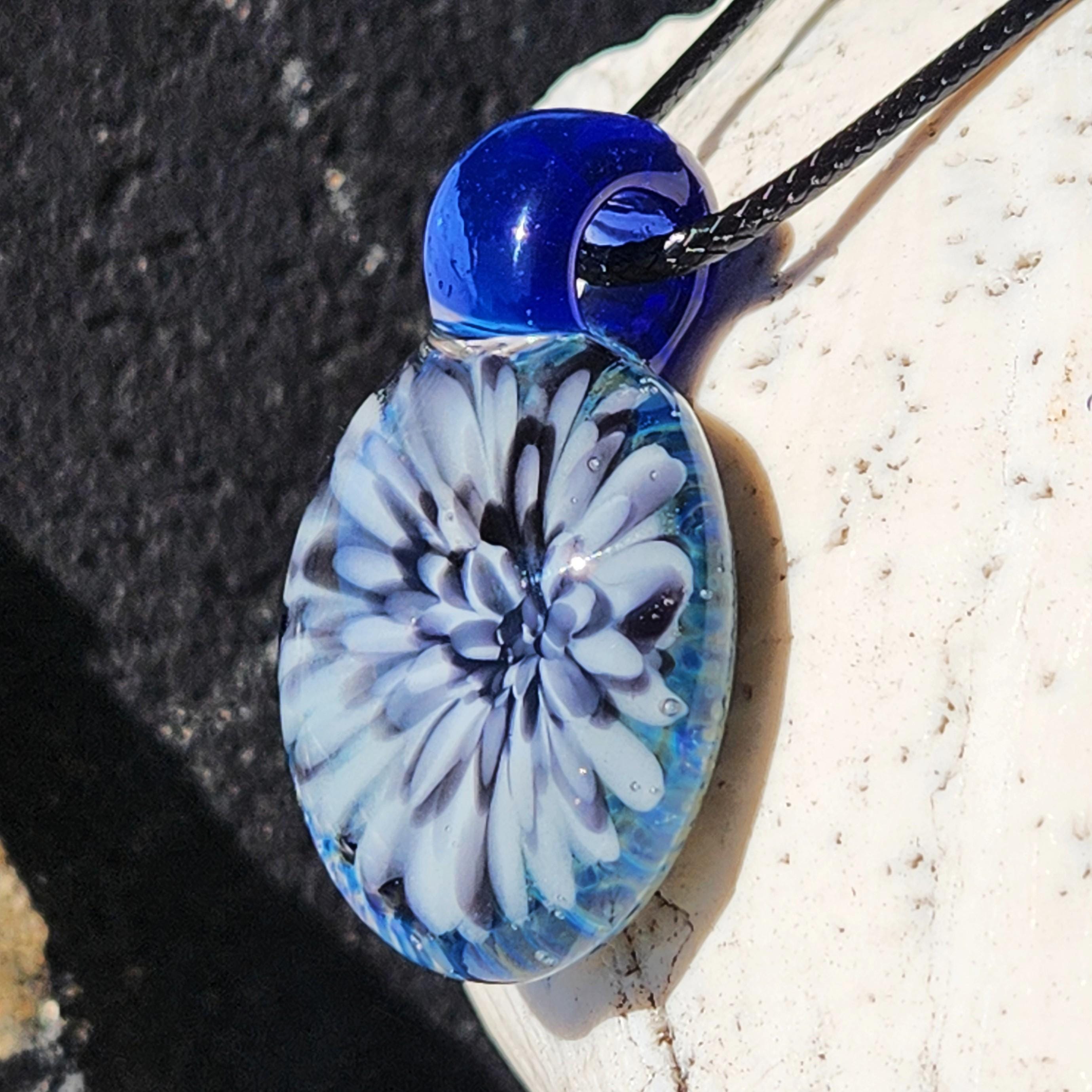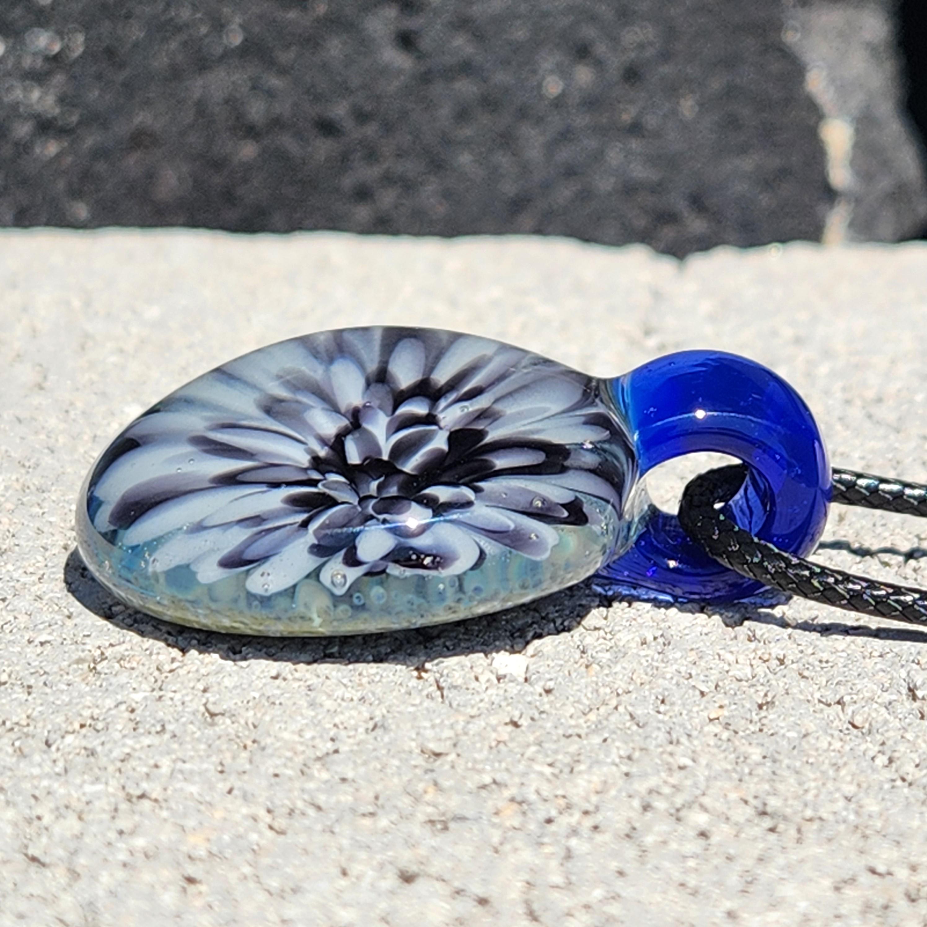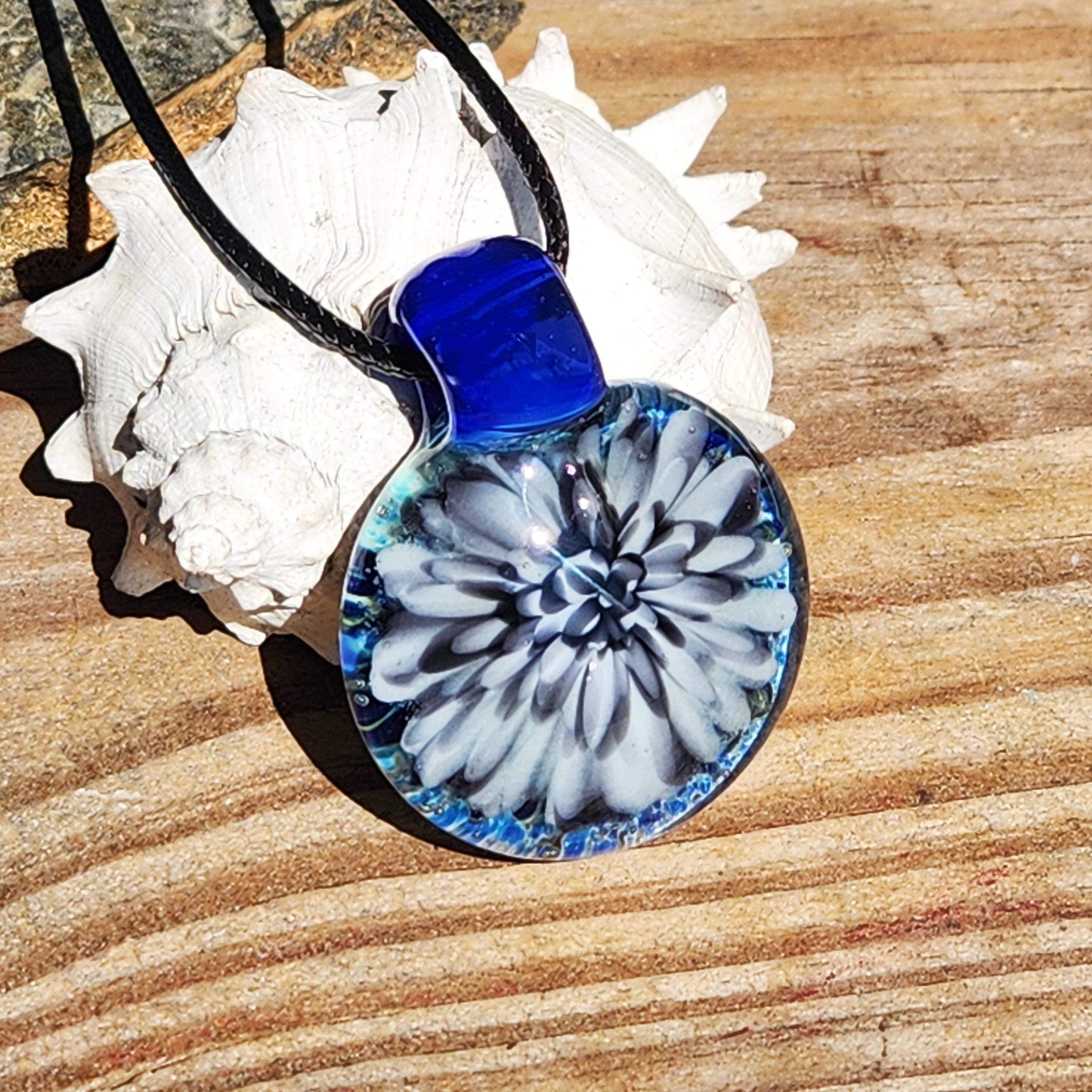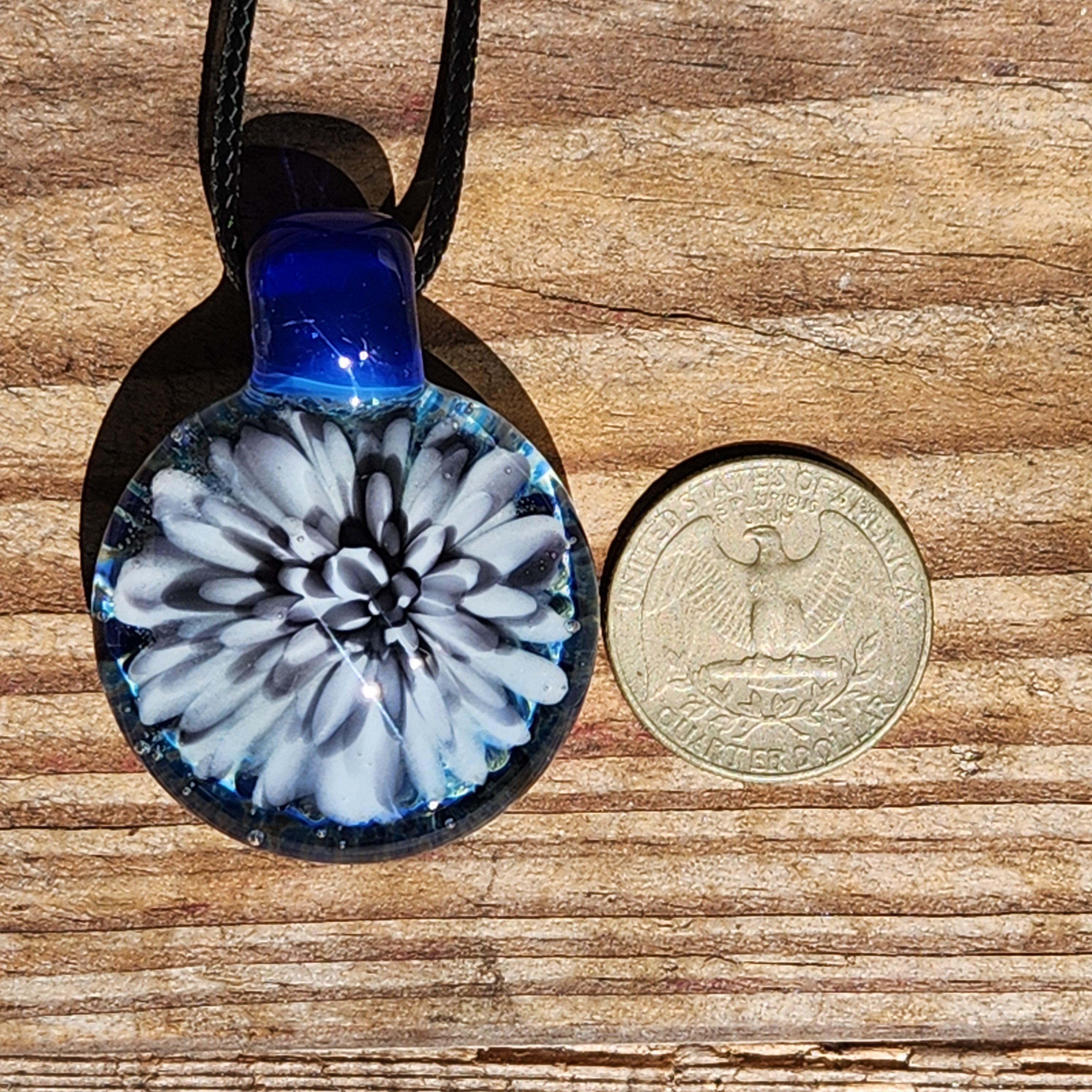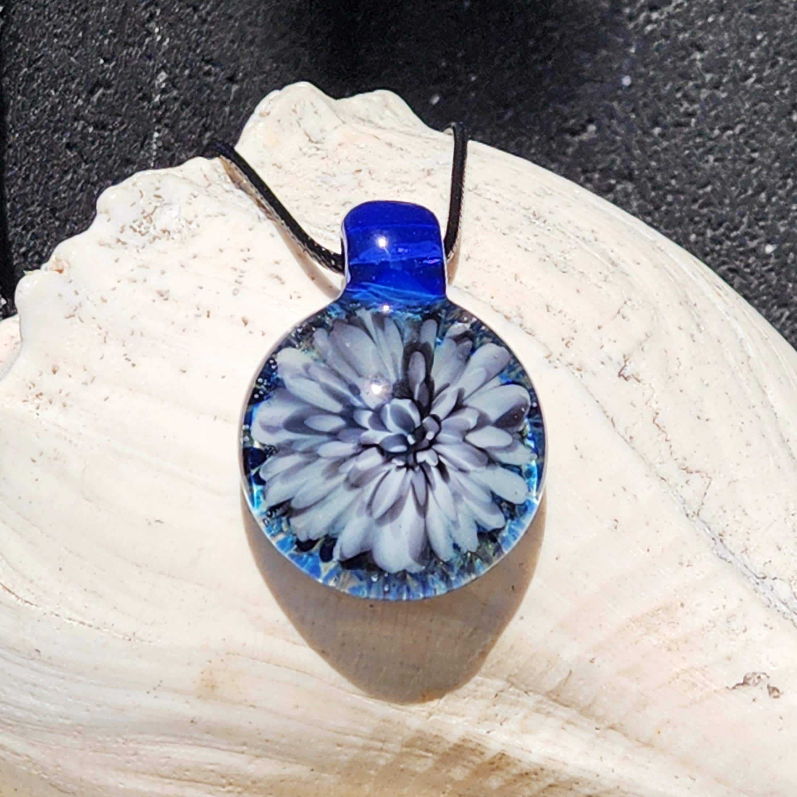 At our studio, we specialize in using a wide variety of materials, including blown glass and stainless steel pendants. The stainless steel pendants can also be made with ashes or fur, hair, and other special items. We encase human and pet cremains within the glass. Etsy prohibits the use of human ash in any creations, so please contact us for more info before placing an order.