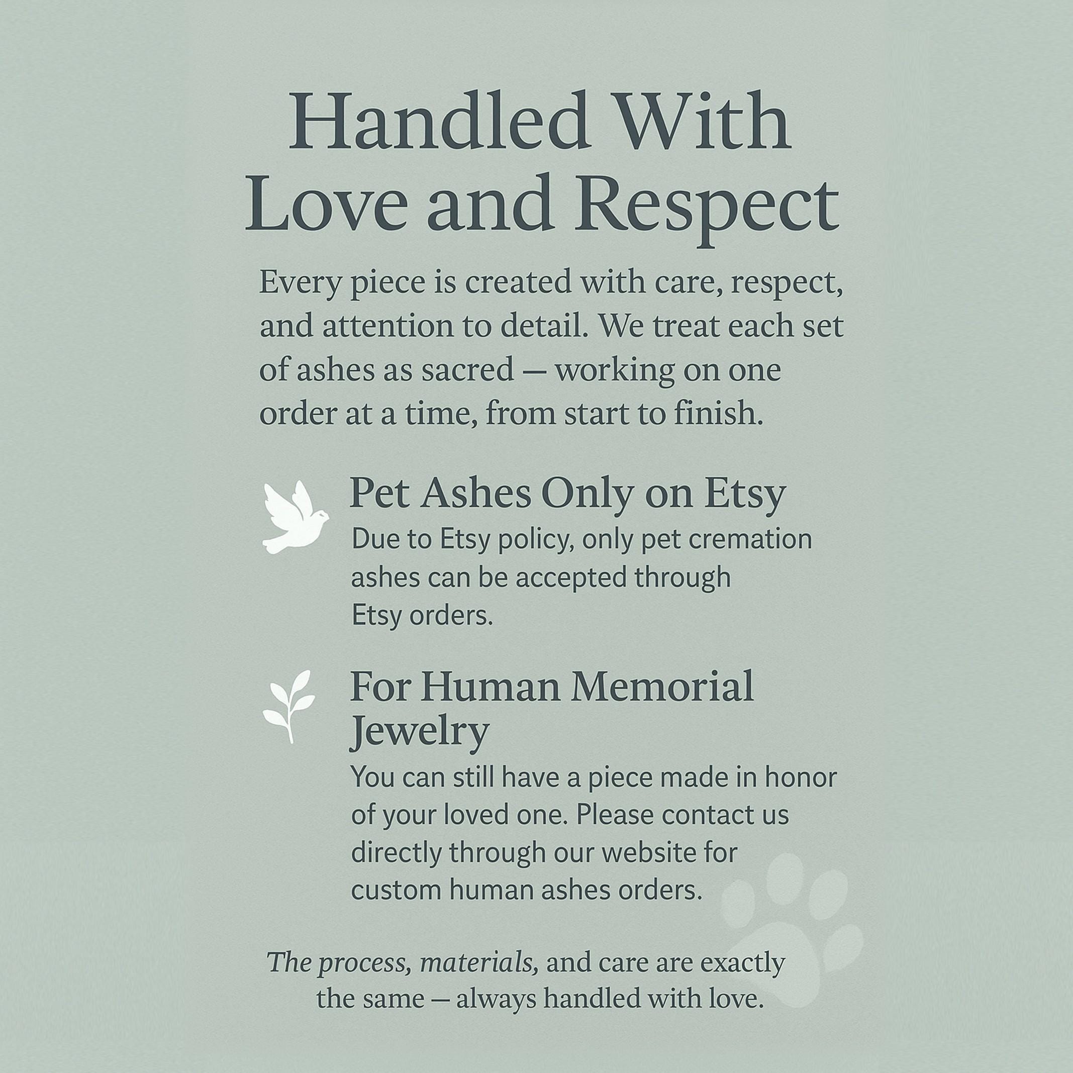 ⚠️ Please note: Etsy’s guidelines do not allow handmade items that involve human ashes, so this listing can only mention pet ashes even though the work I do extends far beyond that. If you would like a memorial bracelet, necklace, or keepsake made with your loved one’s ashes, you can find my full cremation jewelry collection by searching ‘DragonFire Cremation Jewelry’ in your browser. Etsy does not allow direct website links, but my site will come up right away. I’m here for any questions or guidance you may need. I’m truly sorry for the extra steps this creates during an already painful time of loss.